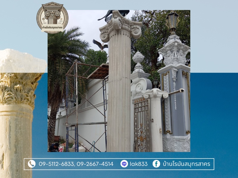 ผลิตจำหน่ายเสาโรมันทั้งแบบดอริก Doric, เสาโรมันแบบไอออนิก Ionic และเสาโรมันแบบคอรินเทียน Corinthian สำหรับโครงการก่อสร้างและโครงการรีโนเวทรวมถึงงาน Exterior & Interior